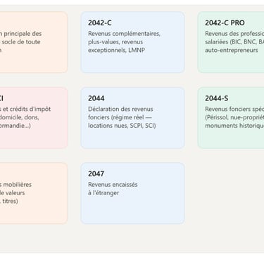 Selon la situation du foyer, plusieurs déclarations complémentaires (ou annexes) doivent y être jointes, et notamment :