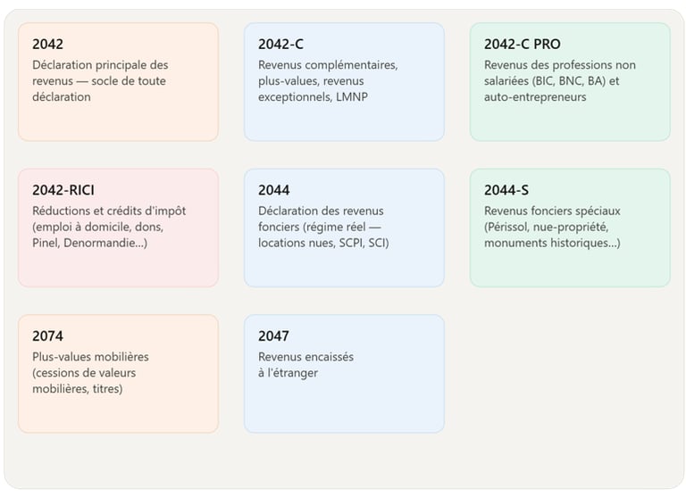 La déclaration principale est le formulaire n° 2042 (Cerfa 10330).