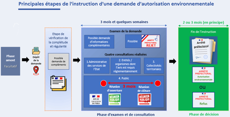 L’autorisation environnementale, depuis son instauration par l'ordonnance n°2017-80 et le décret n°2017-81 du 26 janvier 2017, a tenté de simplifier les procédures administratives pour les projets nécessitant des autorisations multiples. Elle vise à regrouper différentes autorisations (ICPE, IOTA, défrichement, etc.) en une procédure unique, intégrant ainsi des évaluations d’impact, des analyses de risques et des études de compatibilité réglementaire. Ce régime, bien qu'innovant, s’est vu critiqué pour les délais relativement longs d'instruction, de plusieurs mois à parfois plus d’un an, freinant ainsi la réalisation rapide de certains projets industriels, en particulier dans les énergies renouvelables.
